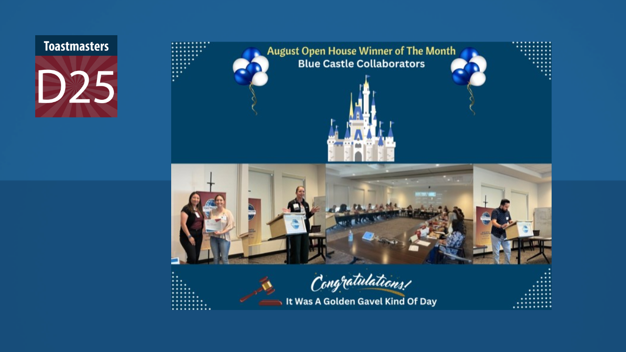 Blue Castle Collaborators is a welcoming, friendly, and supportive community club affiliated with the Cook Children’s Health Care System. This club meets in a virtual setting on the first and third Tuesdays of each month. On August 15, 2023, they celebrated their second hybrid open house. Impressively, 17 of the 24 members graced the occasion, joined by 17 guests, among whom were 16 non-Toastmasters and the distinguished Division Director, Denise McConnell.
