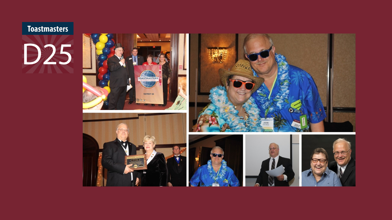 John’s Toastmasters District service is listed at end of this article.