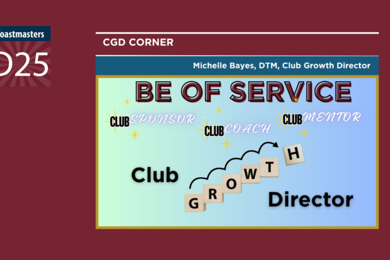 by Michelle Bayes, DTM, Club Growth Director Are you on the path towards a DTM? Let the club growth team assist in helping you achieve your goal as a mentor, coach or club sponsor. As we continue to “ignite our pipeline,” having Toastmasters willing to serve as club sponsors and mentors is vital to establishing…