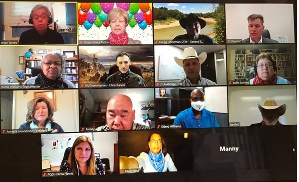 Longhorn Toastmasters celebrated our 60th Charterversary by moseying off the dusty trails into Zoom-In for a spell to wet our whiskers! Theme: “The Historical Toastmasters Club.”